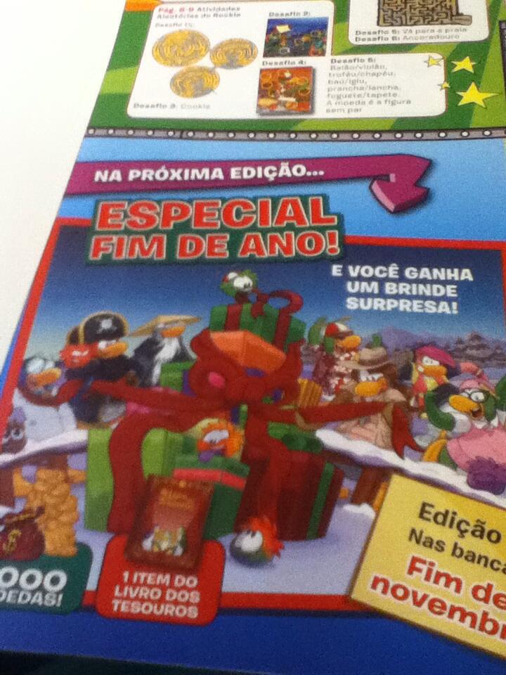 É isso mesmo! Parece que a próxima edição da revista virá com um Brinde especial de Fim de Ano! Mas a pergunta que devemos nos perguntar é: Qual será esse brinde especial que virá com a revista? Será semelhante ao Chapéu Pinguinando? Ou será só um item comum mas oferecido como brinde? Ou será um item que pode ser usado inclusive na real? Deixem as suas opiniões nos comentários!